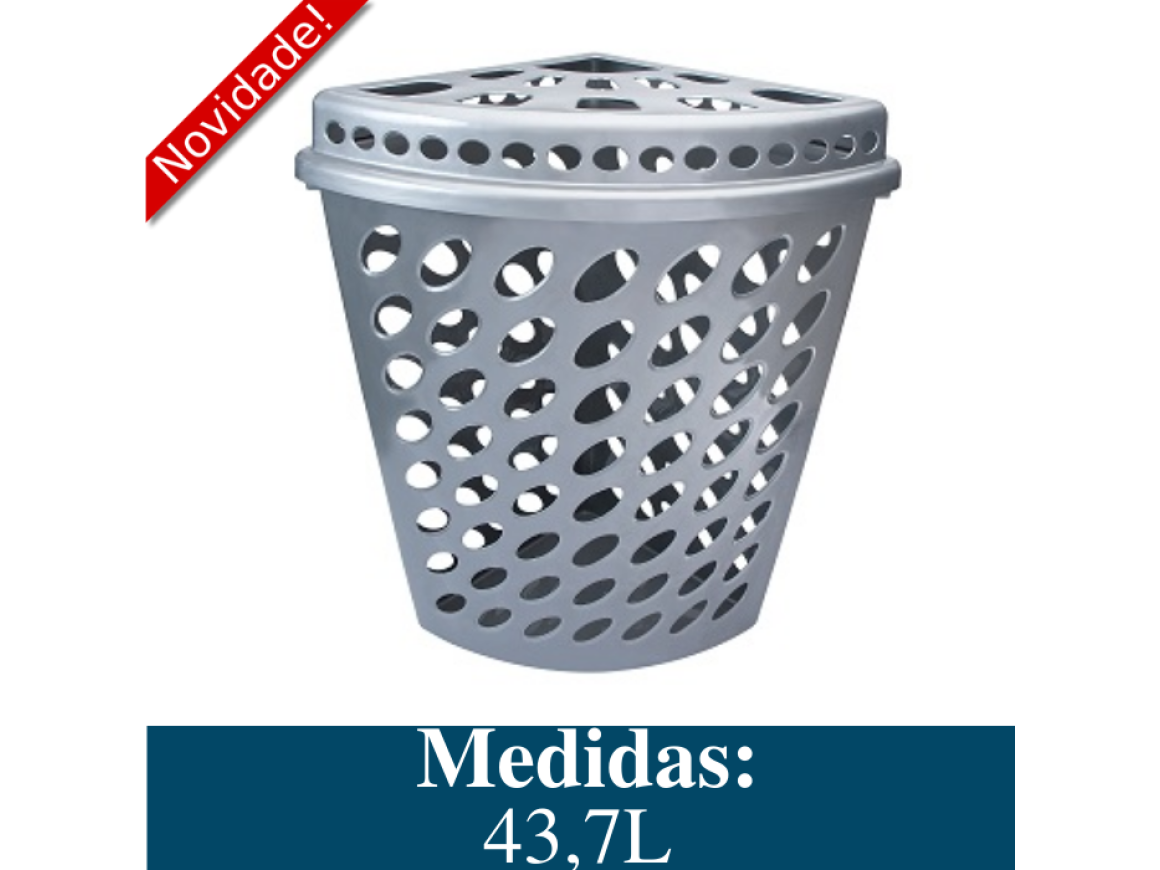 CESTO TELADO TRIANGULAR CINZA COM TAMPA 2810 43,7 LITROS