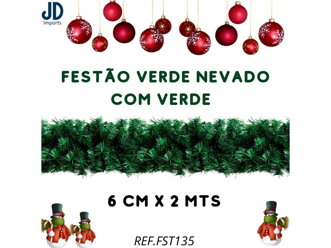FESTÃO VERDE NEVADO COM VERDE 6CM X 2MTS FST135