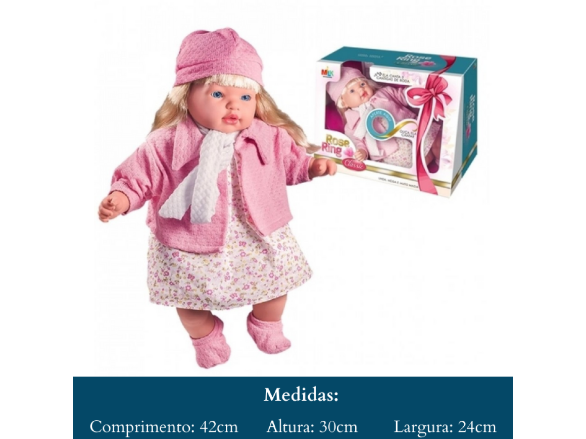 BONECA BEBÊ ROSE RING CLASSIC CANTA 3 CANTIGAS