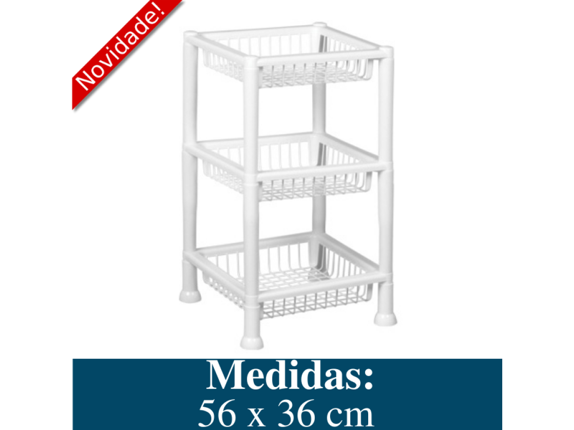 CESTO QUADRADO EMPILHAVEL COM 03 ANDARES BRANCO 351