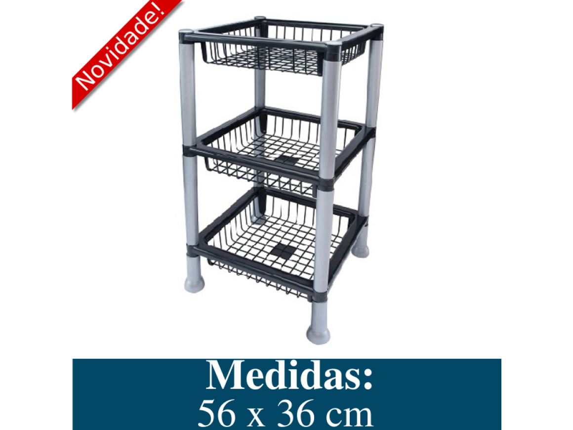 CESTO QUADRADO EMPILHAVEL COM 03 ANDARES PRETO 427