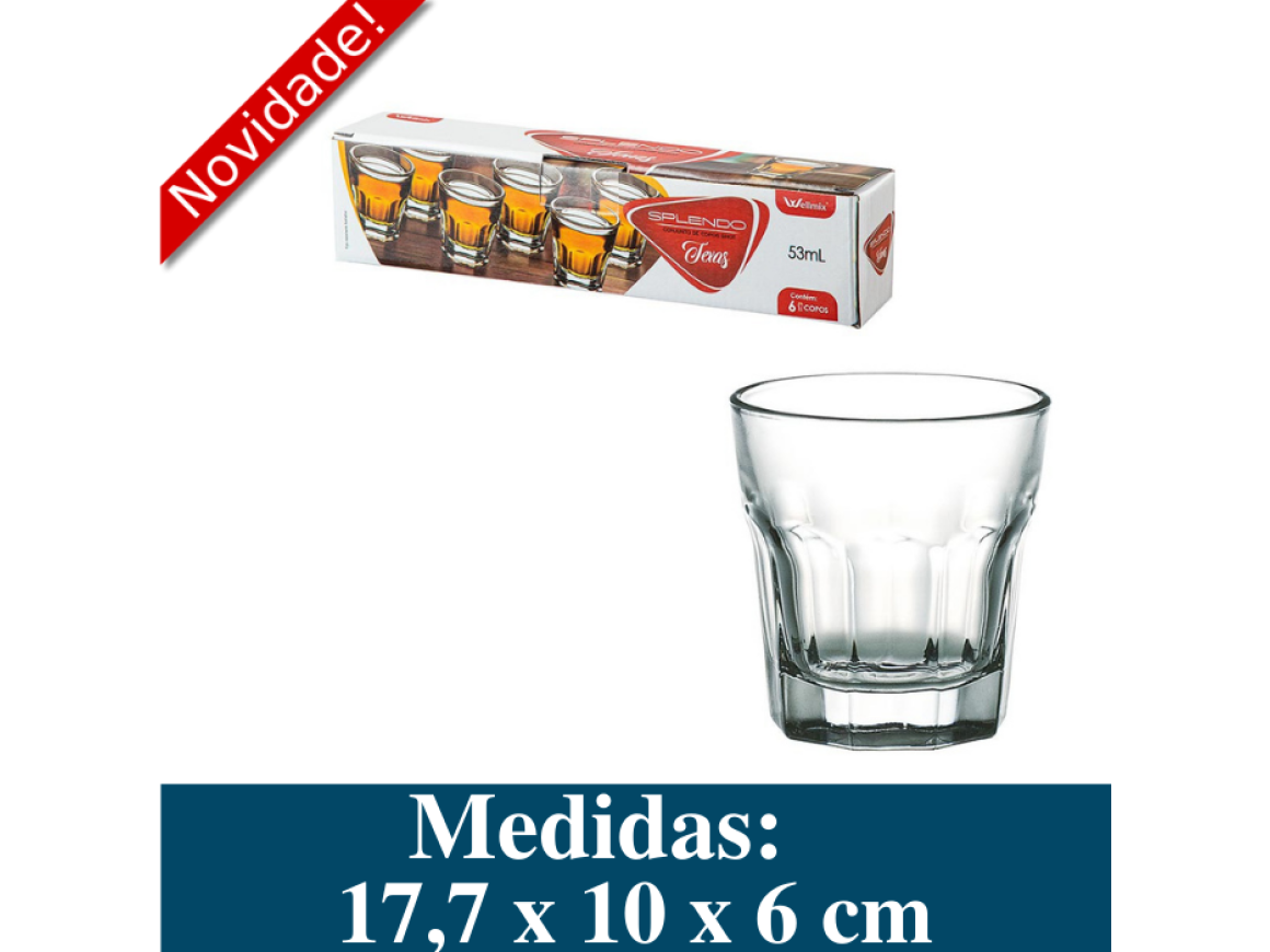 CONJ COPO VIDRO SHOT 43ML 6 PCS TRANSP TEXAS REF. 4193