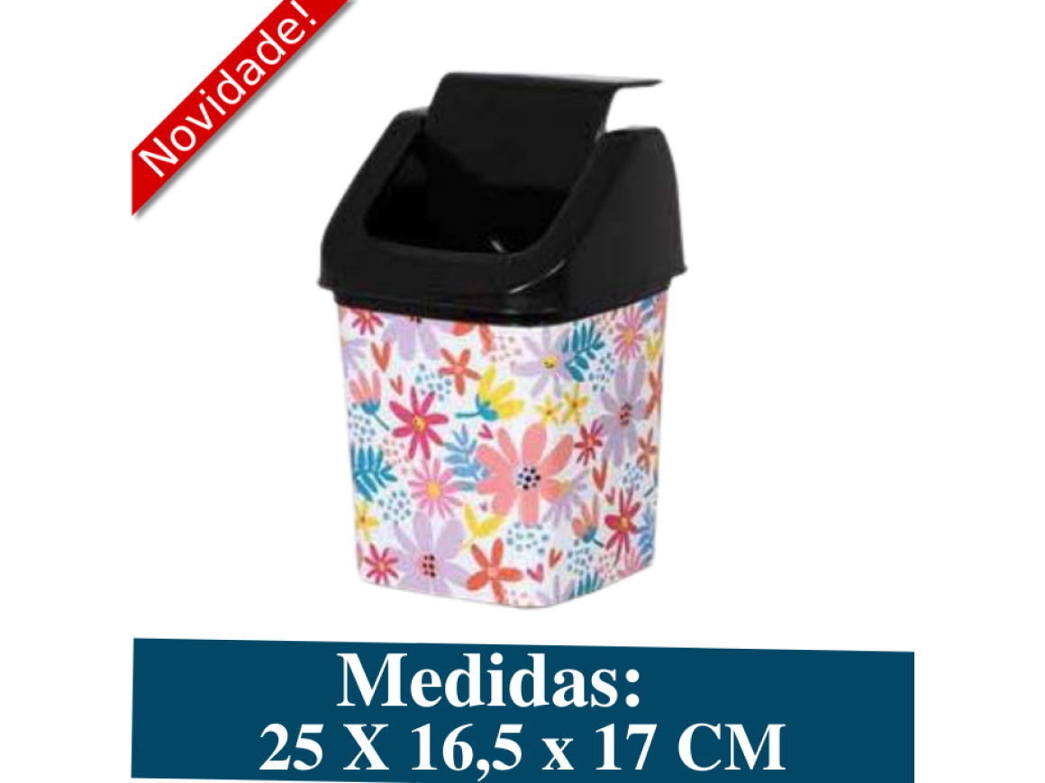 LIXEIRA 3,6 L C/ TAMPA MOVEL LABEL FLOWERS 287