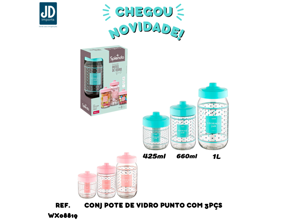 CONJ POTE DE VIDRO PUNTO COM 3PÇS 425ML 660ML 1L WX08819