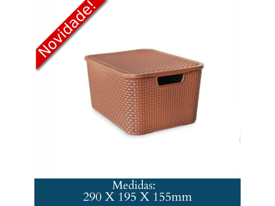 ORGANIZADOR RATTAN C/ TAMPA 15 LITROS - MARROM 25592CS