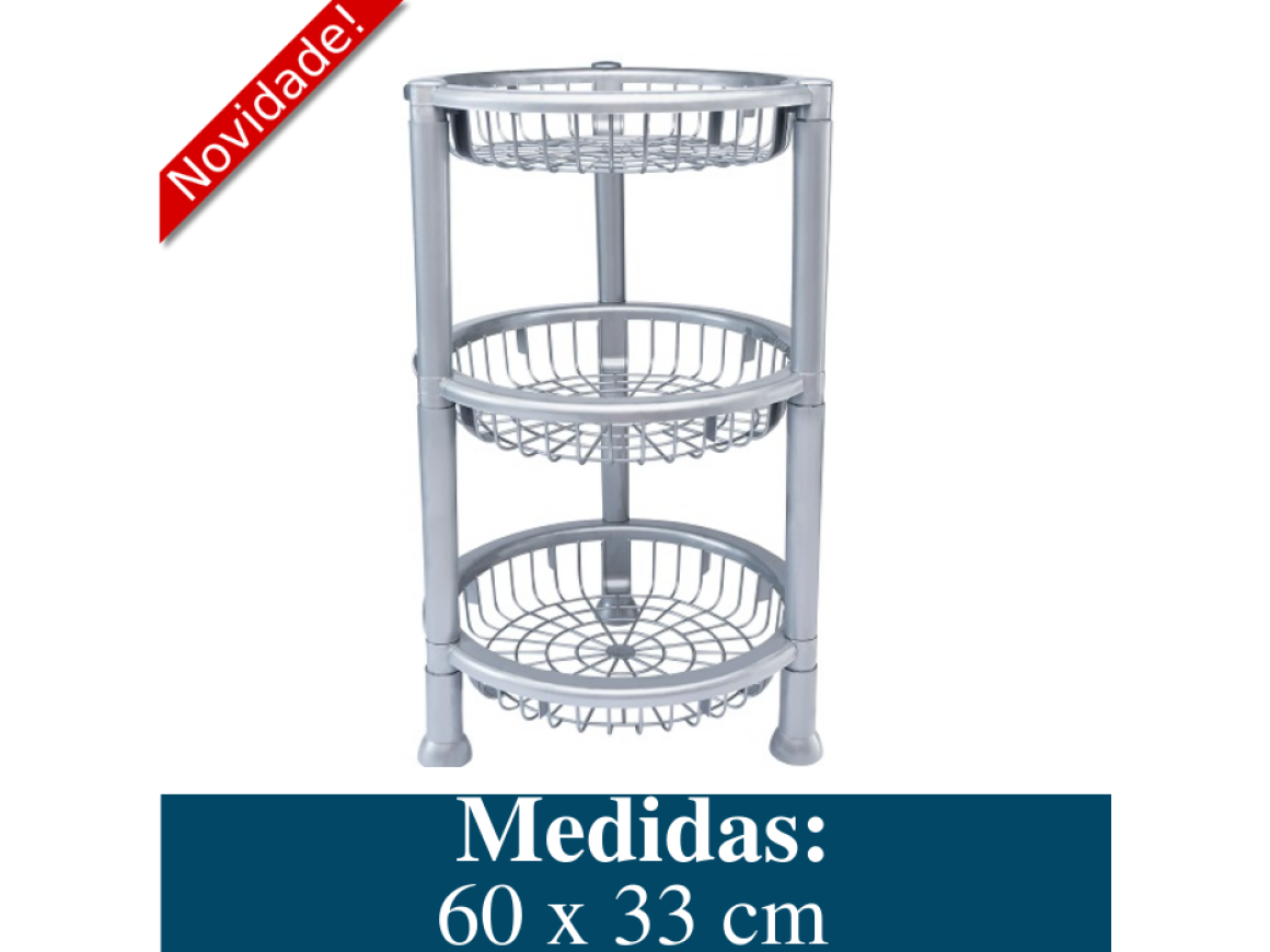 CESTO REDONDO EMPILHAVEL COM 03 ANDARES PRATA 449
