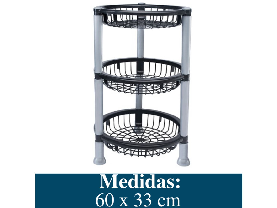 CESTO REDONDO EMPILHAVEL COM 03 ANDARES PRETO