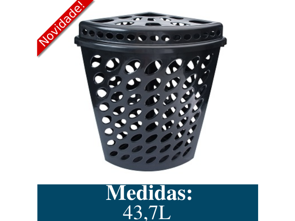 CESTO TELADO TRIANGULAR PRETO COM TAMPA - 43,7 L