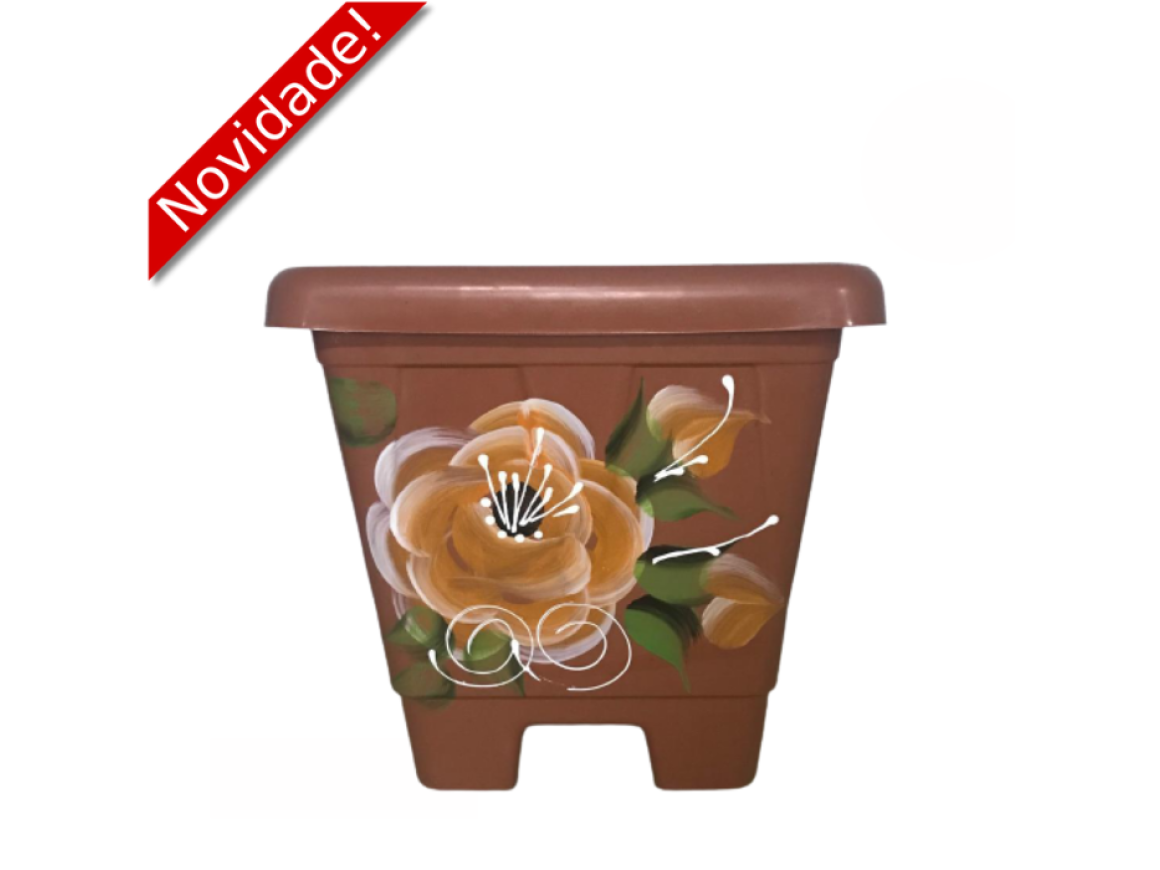 VASO QUADRADO M 3.800 L TERRACOTA DECORADO REF. 6013