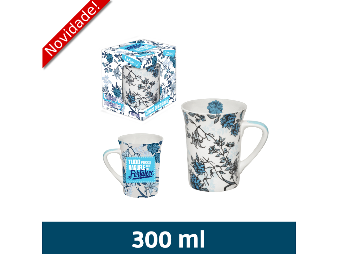 CANECA CERAM MUDDY 300ML FLORES FRASE WX6176