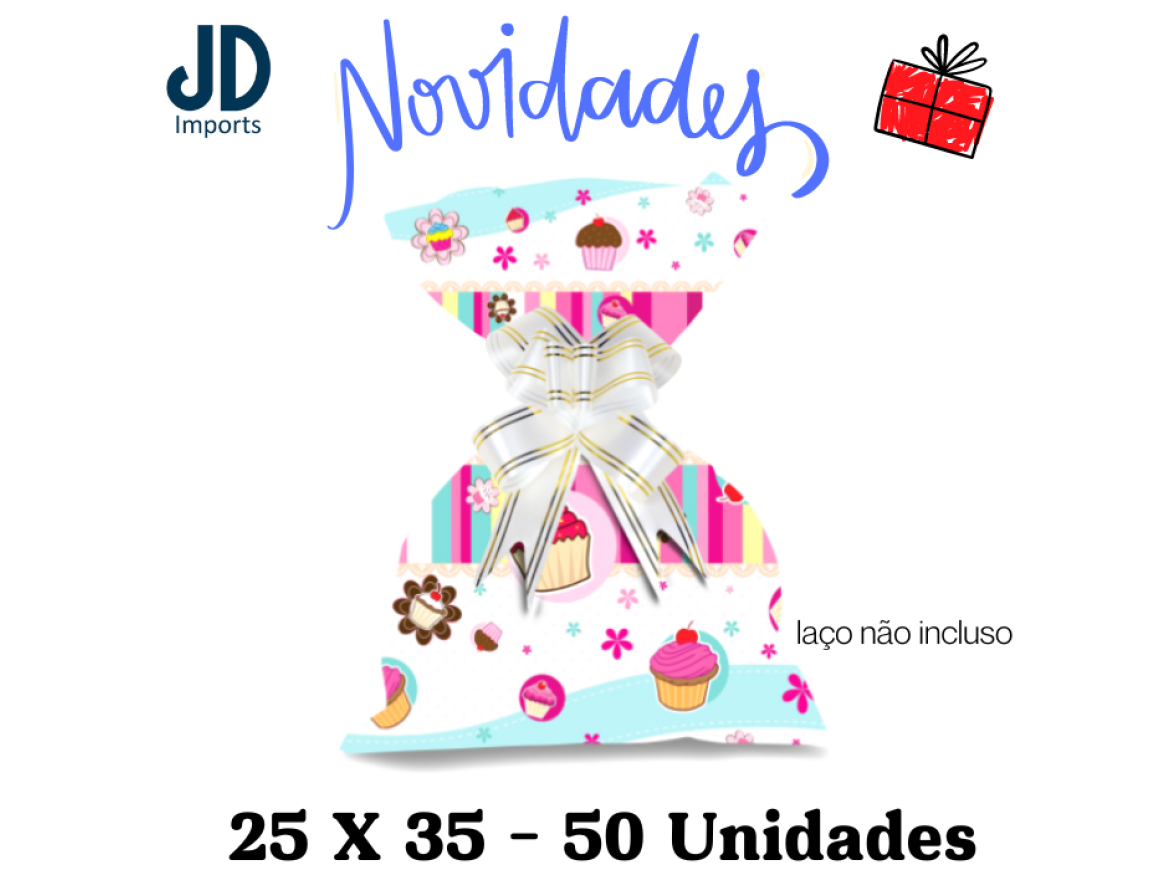 SAQUINHO SACO P/ PRESENTES 25X35 - 50 UN. - 219 CUPCAKE