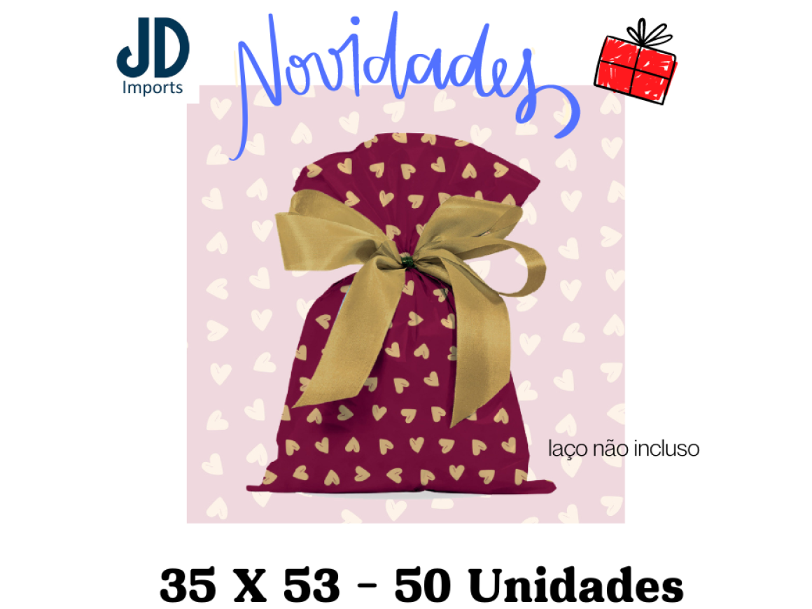 SAQUINHO P/ PRESENTE 35X53 - 50 UN. - 868 CORACOES