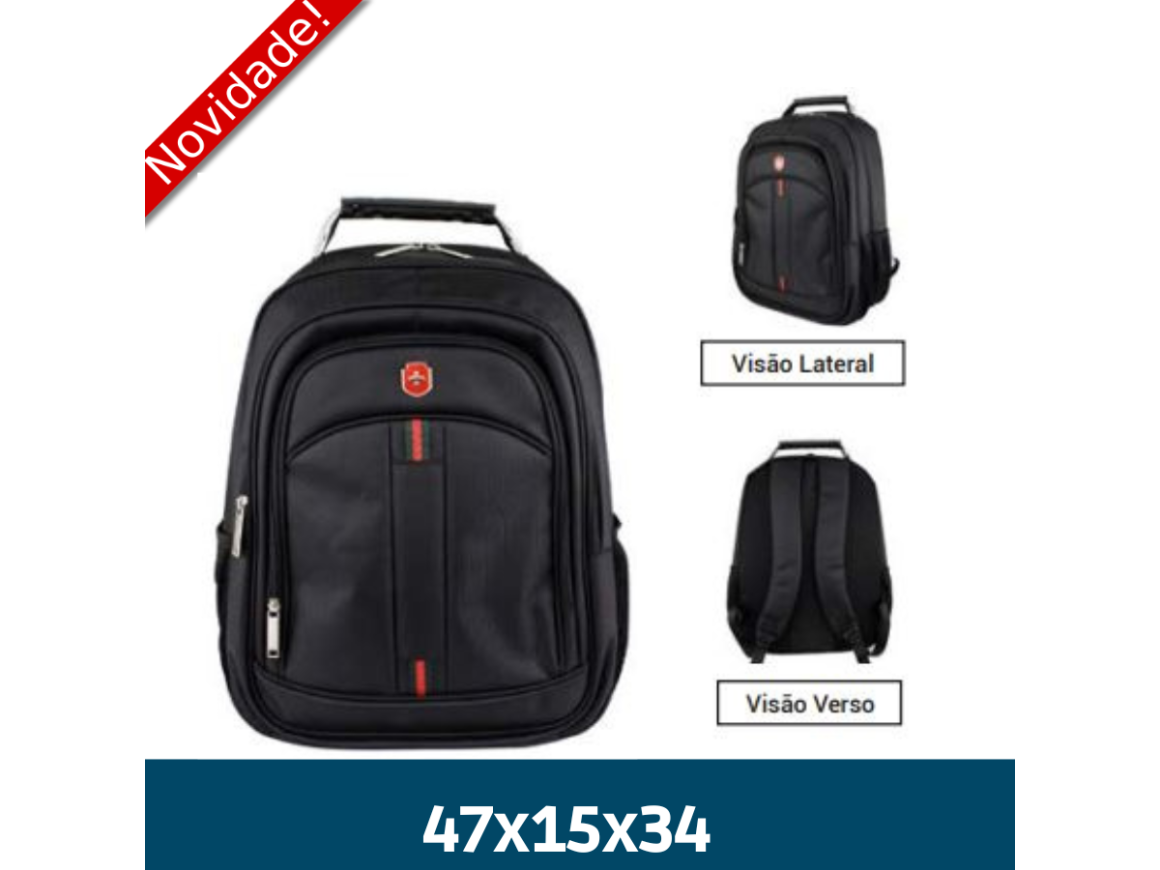 MOCHILA EXECUTIVA LINES 18 POLIESTER C/ COMPART PARA NOTEBOOK PRETA SL04014