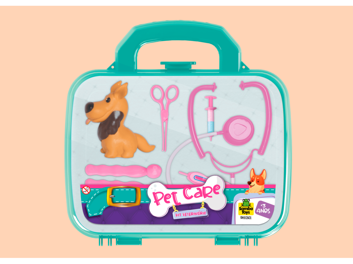 Um kit completo para você brincar e cuidar do seu cãozinho!! Acompanha 1 estetoscópio, 1 seringa, 1 tesoura, 1 otoscópio, 1 bisturi, 1 termômetro e 1 lindo cachorrinho!