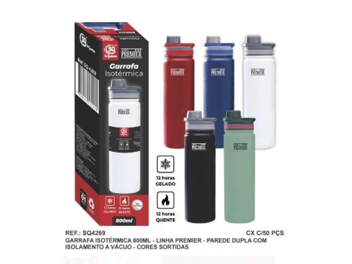 GARRAFA ISOTERMICA EM AÇO INOXIDAVEL DE 800ML SQ4269