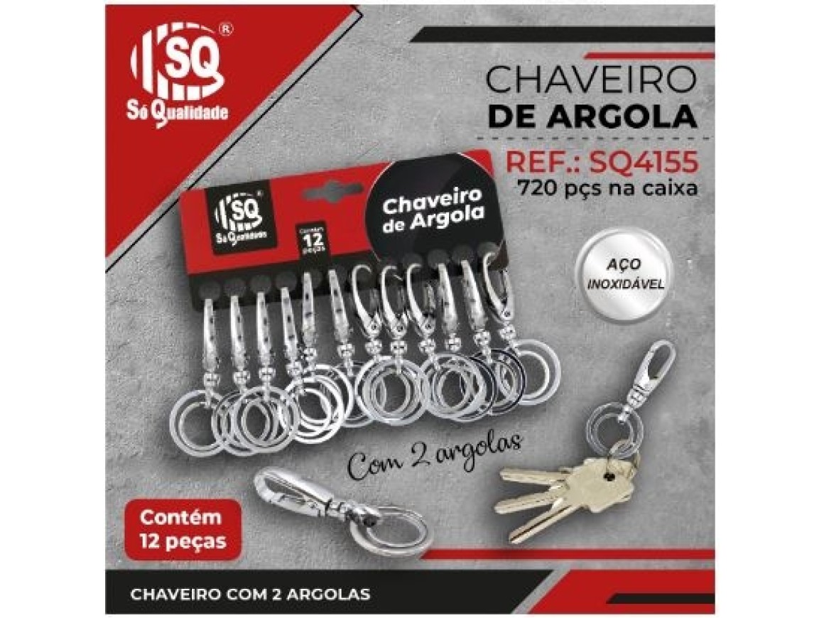 CHAVEIRO COM 2 ARGOLAS DE METAL CART COM 12 PÇS SQ4155