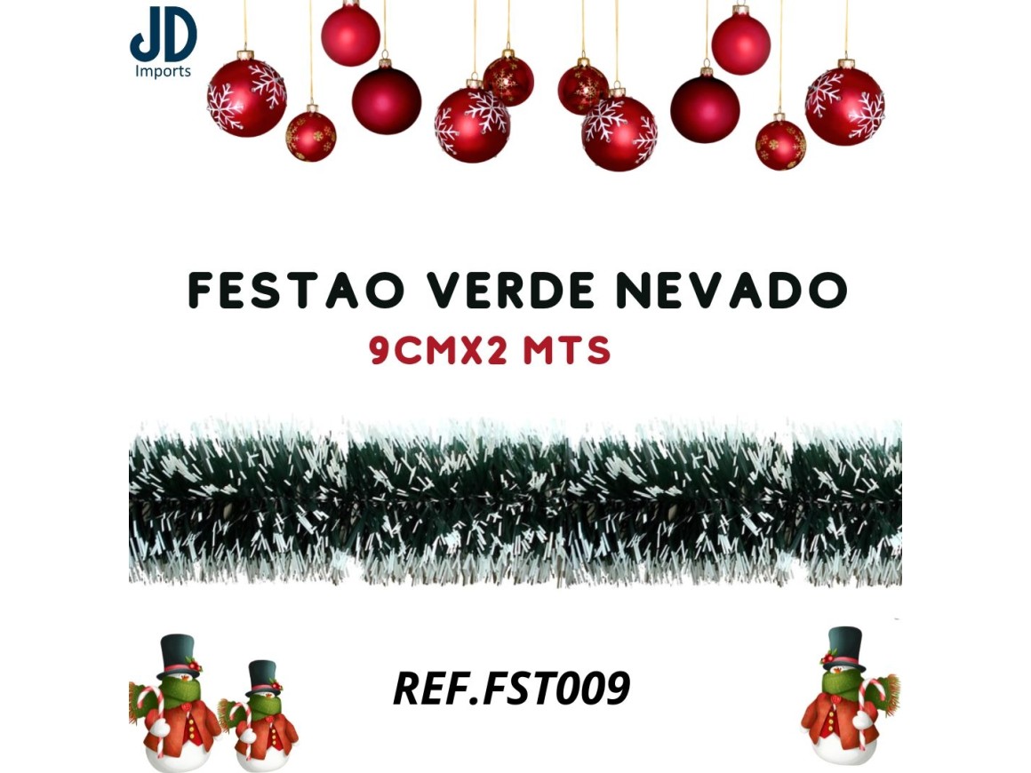 FESTÃO VERDE NEVADO 9CM X 2MTS FST009
