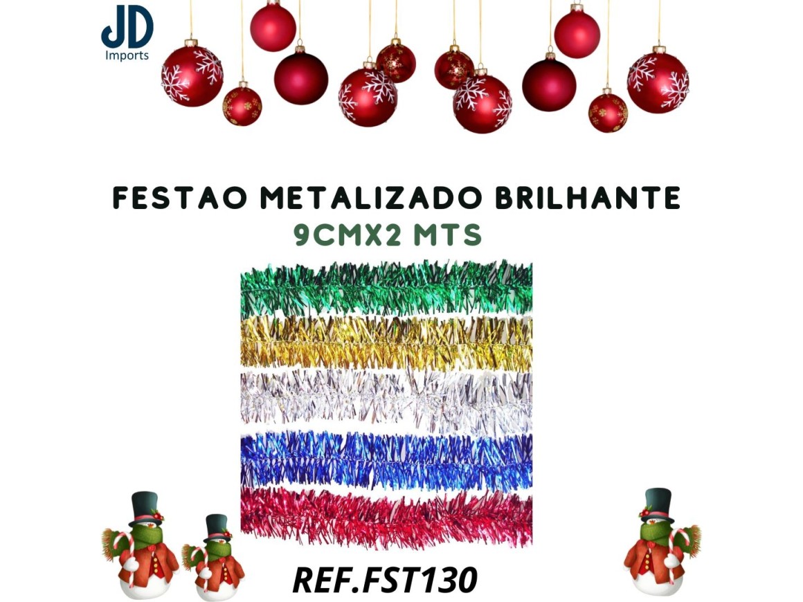 FESTÃO METALIZADO BRILHANTE C/ CORAÇÃO 9CM X 2MTS FST130