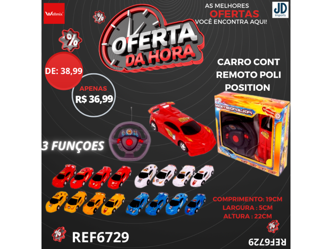 CARRO CONT REMOTO 3 FUNCOES POLE POSITION REF WB6729